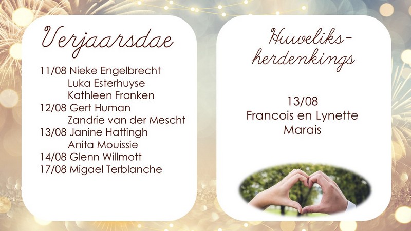 NG Vishoek Nuusbrief – 19 Aug 2024