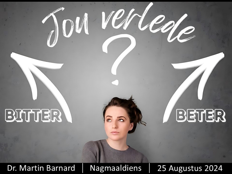 Ons is besig met ‘n kort reeks van twee weke oor Josef se verhaal. Sondag sluit ons hierdie verhaal by die Nagmaalerediens af. Ons hanteer die laaste deel van Josef se lewe. Ons fokus veral op die gedagte waar Josef homself bekendstel aan sy broers. Wat ‘n besondere verhaal. In die verlede het almal van ons, soos Josef, al krisisse ervaar. Het jy bitter of beter daar uitgekom?