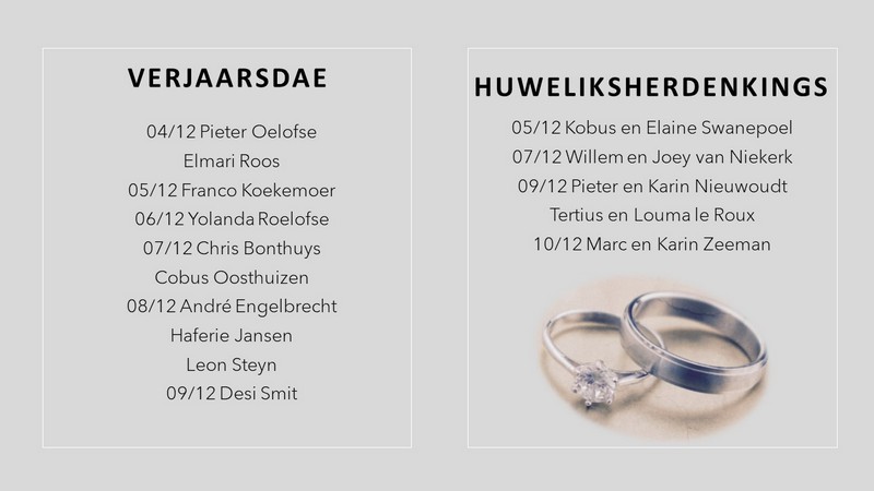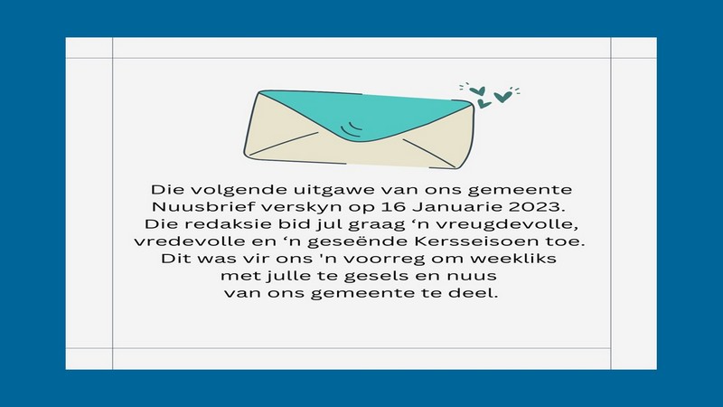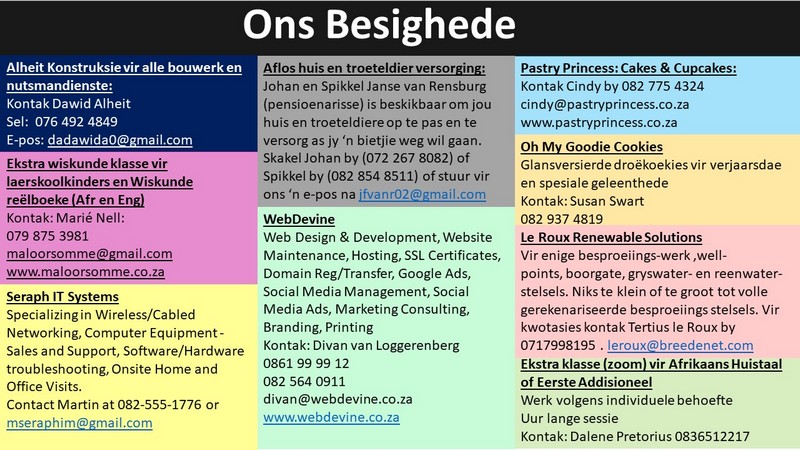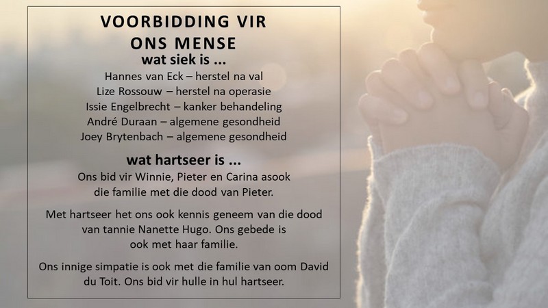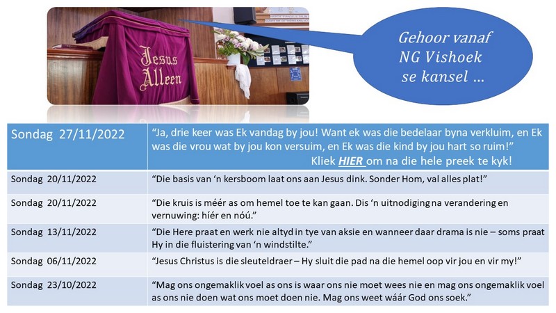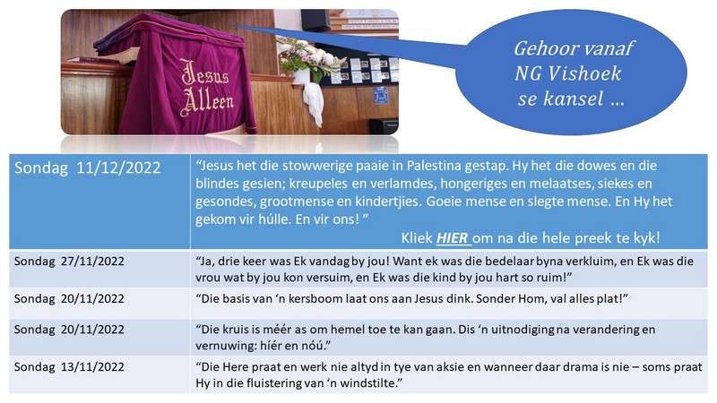 Webtuiste: https://www.ngvishoek.co.zaFacebook: NGVishoekOm ons weeklikse nuusbrief te ontvang: Stuur ‘n e-pos na media@ngvishoek.co.za