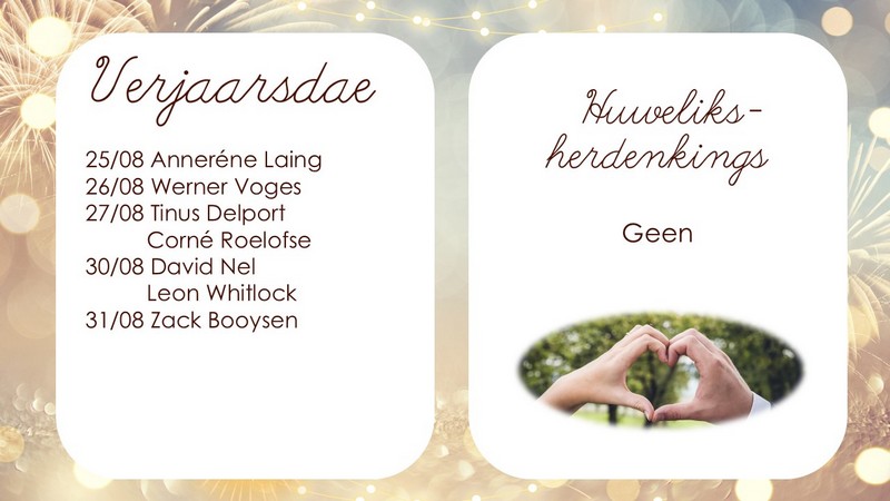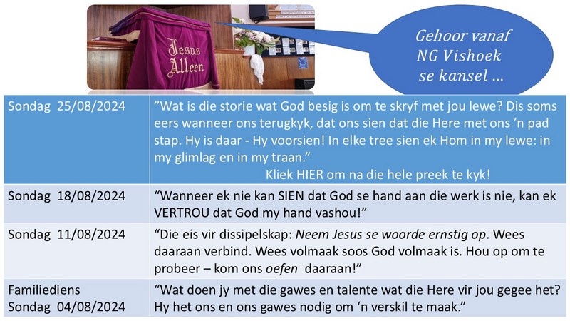 NG Vishoek Nuusbrief – 19 Aug 2024