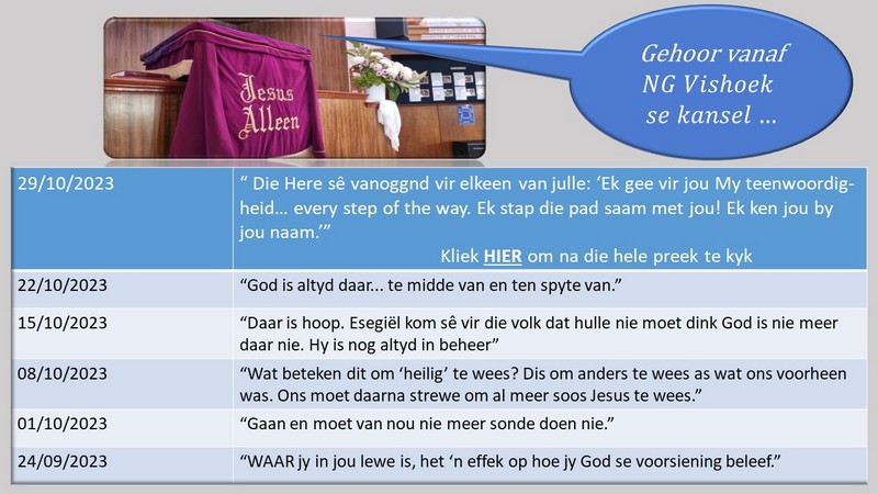 NG Vishoek Nuusbrief – 23 Oktober 2023