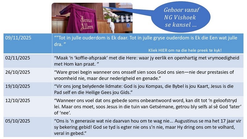 Tuis / NG Vishoek Nuusbrief – 10 Nov 2025
