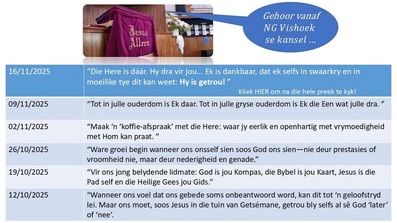 Tuis / NG Vishoek Nuusbrief – 17 Nov 2025