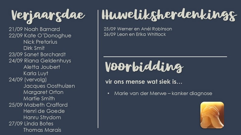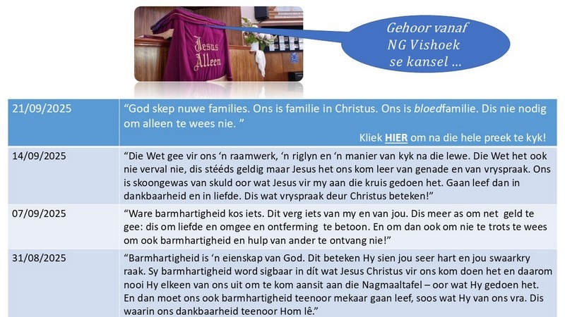 Tuis / NG Vishoek Nuusbrief – 22 Sep 2025