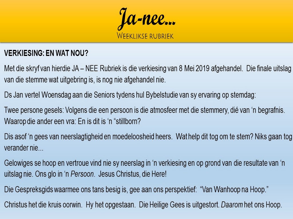 NGVishoek Nuusbrief 13 Mei 2019