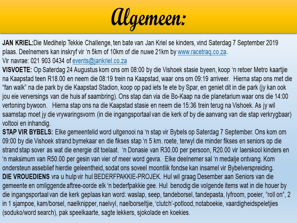 NGVishoek Nuusbrief - 19 Augustus 2019