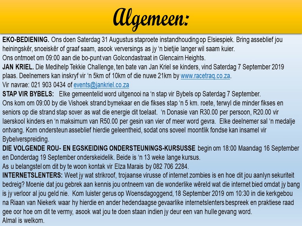 NGVishoek Nuusbrief - 26 Augustus 2019