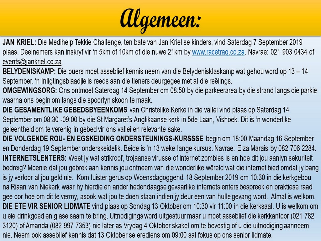 NGVishoek Nuusbrief - 2 September 2019