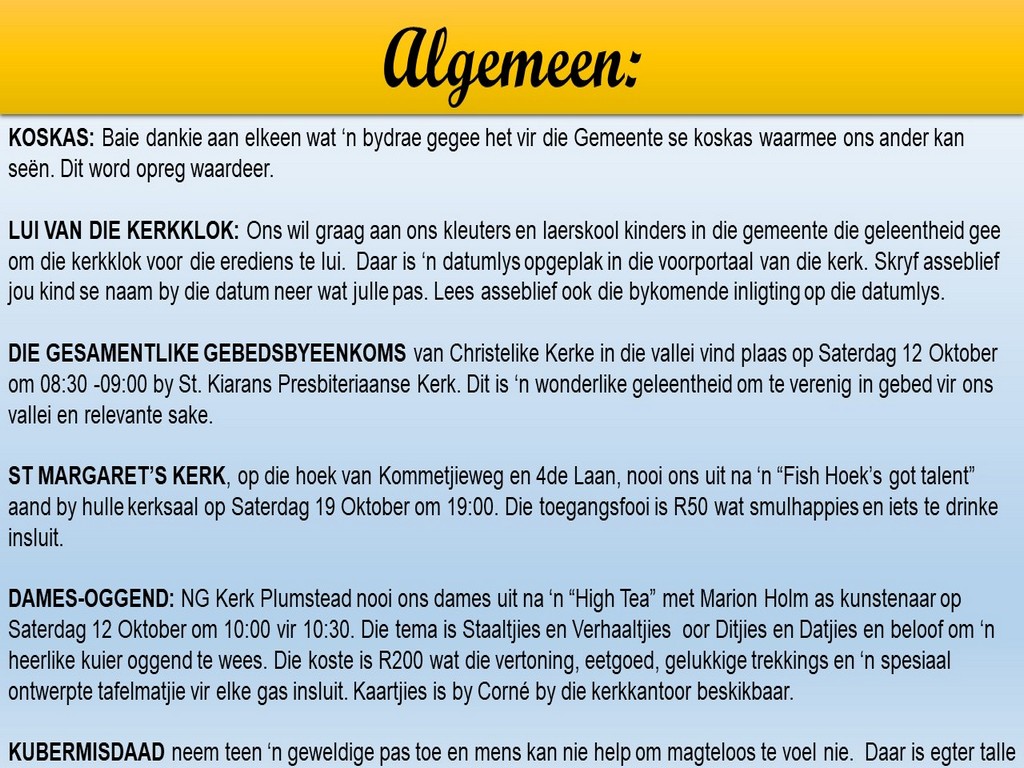 NGVishoek Nuusbrief - 7 Oktober 2019
