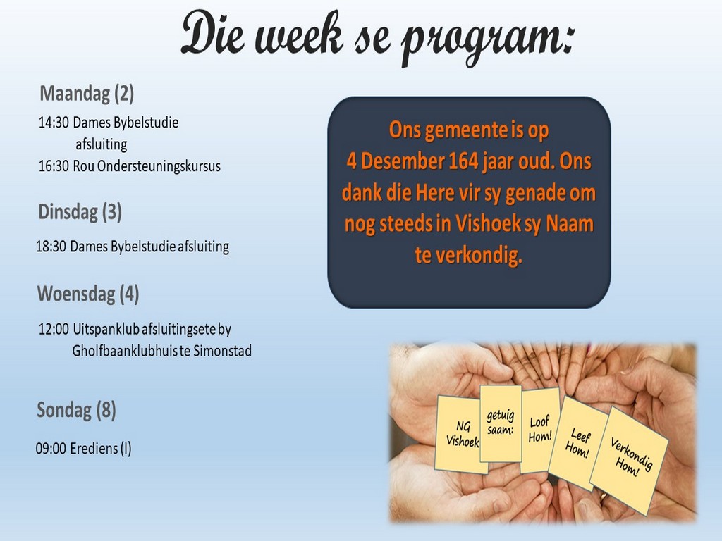 NGVishoek Nuusbrief - 2 Desember 2019