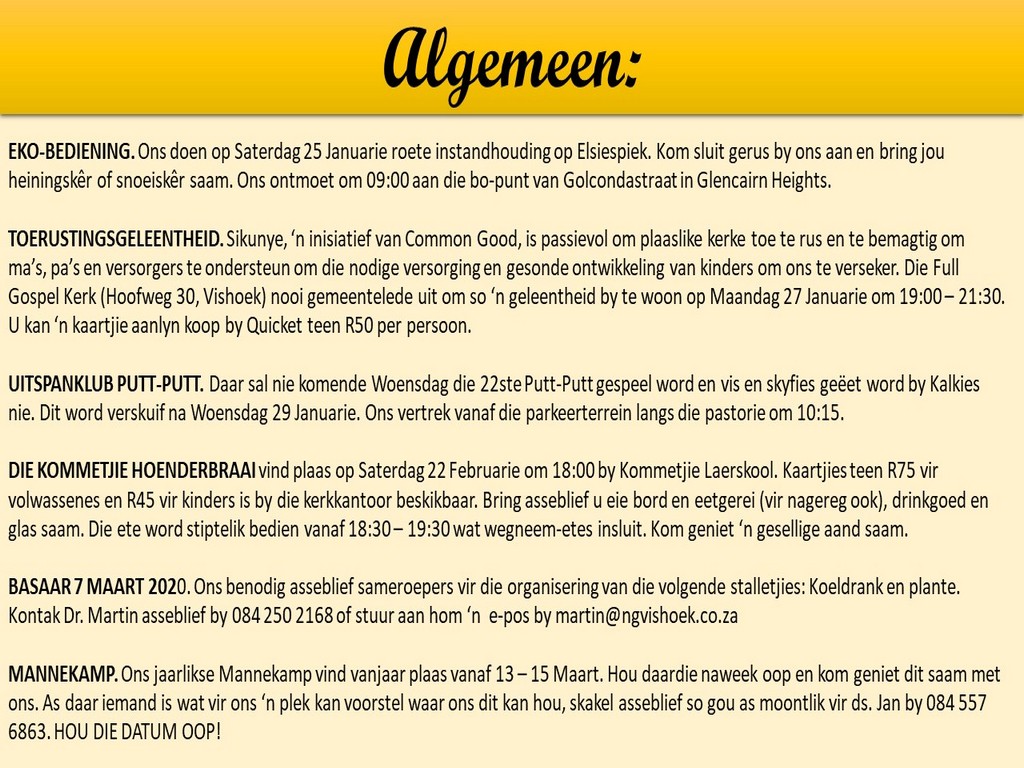 NGVishoek Nuusbrief - 20 Januarie 2020