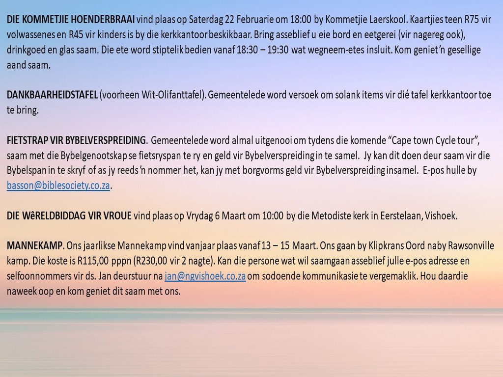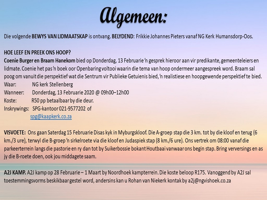 NGVishoek Nuusbrief - 10 Februarie 2020