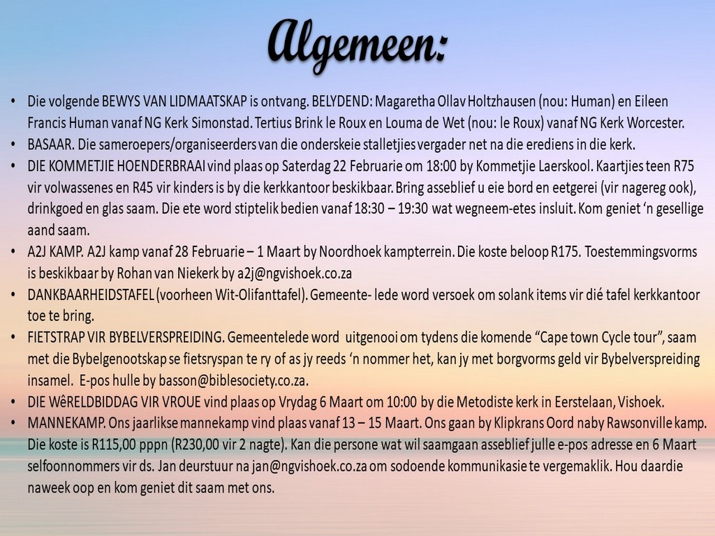 NGVishoek Nuusbrief - 17 Februarie 2020