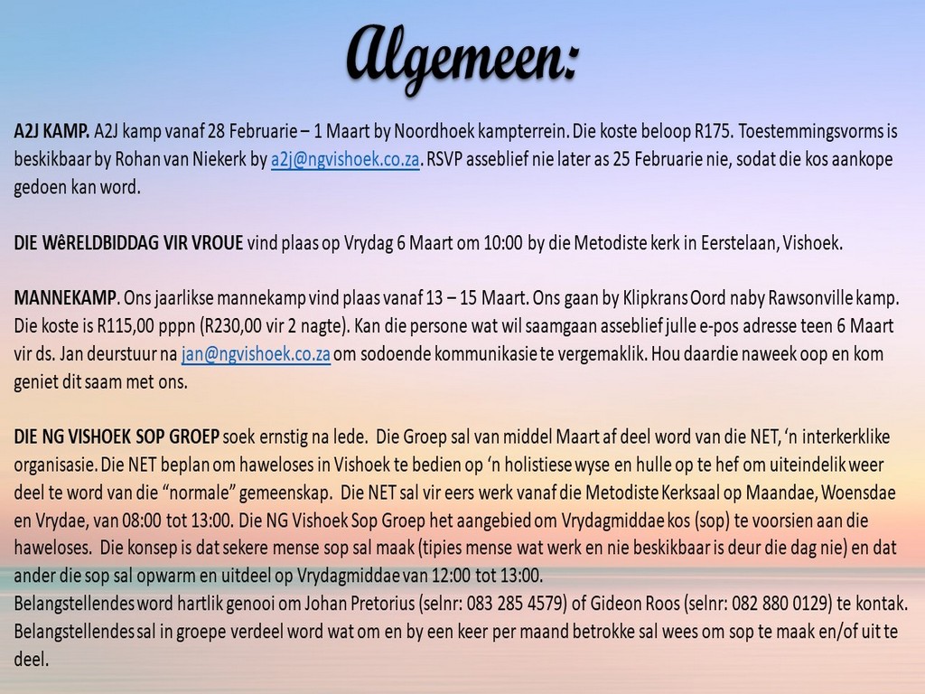 NGVishoek Nuusbrief - 24 Februarie 2020