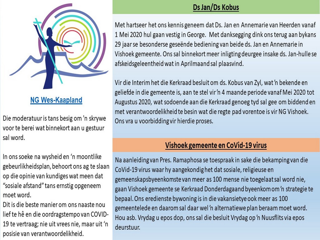 NGVishoek Nuusbrief - 16 Maart 2020