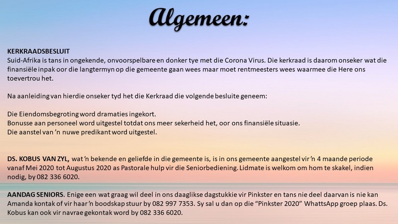 NGVishoek Nuusbrief - 18 Mei 2020