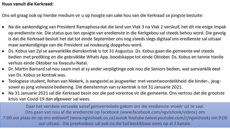 NG Vishoek Nuusbrief - 31 Augustus 2020