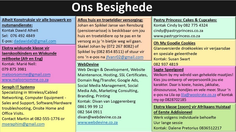 Stuur 'n e-pos namedia@ngvishoek.co.za