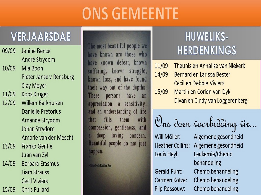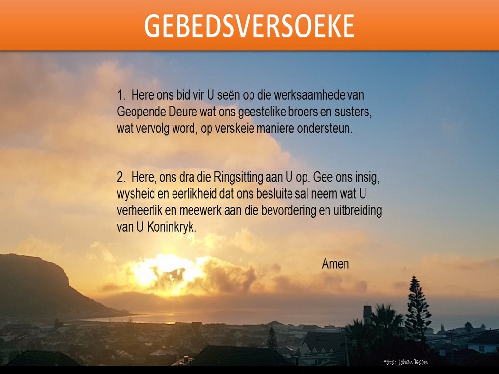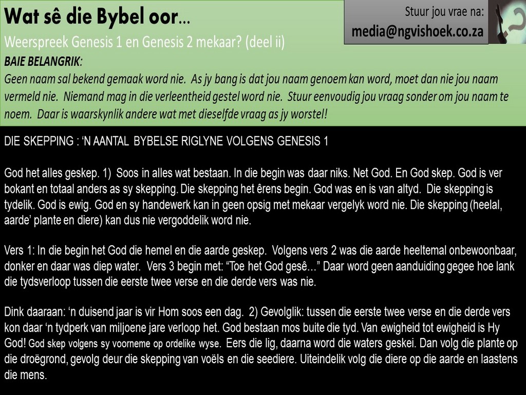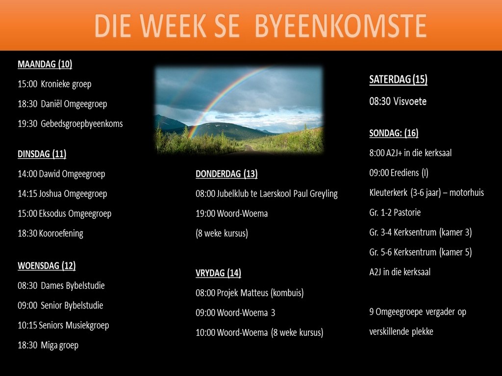 Om ons weeklikse nuusbrief te ontvang: Stuur 'n e-pos namedia@ngvishoek.co.za