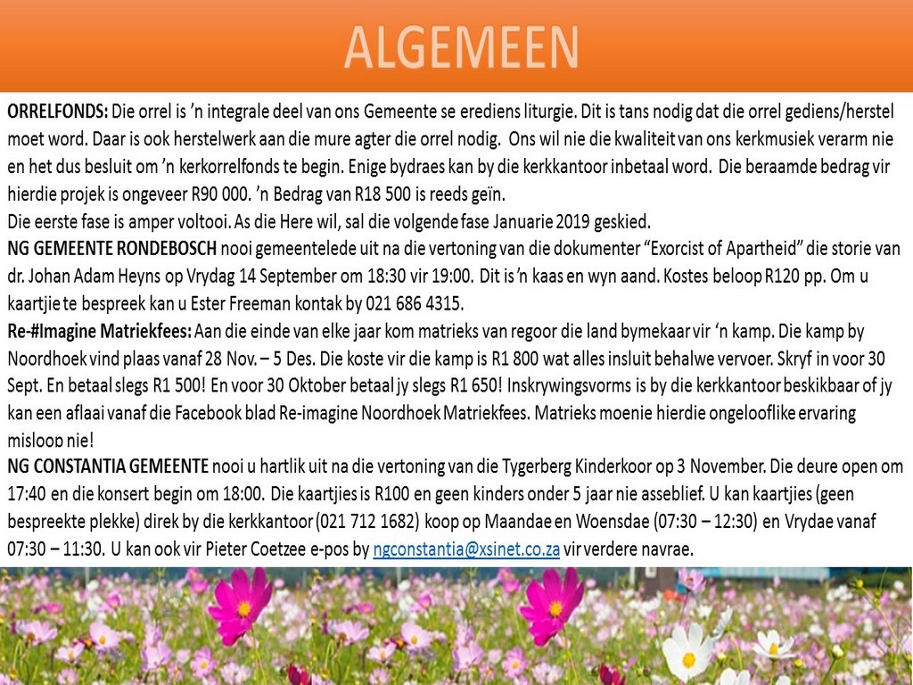 NGVishoek Nuusbrief 10 September 2018