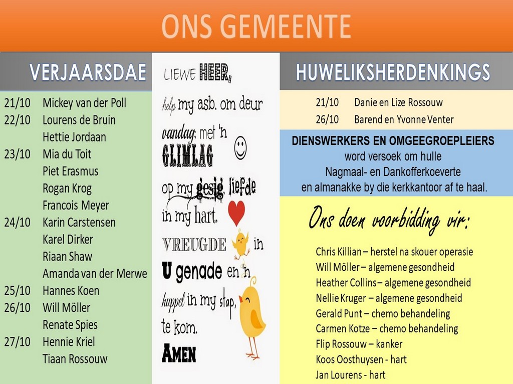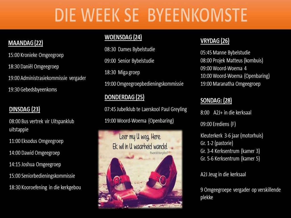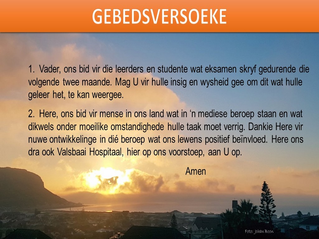 Om ons weeklikse nuusbrief te ontvang: Stuur 'n e-pos namedia@ngvishoek.co.za