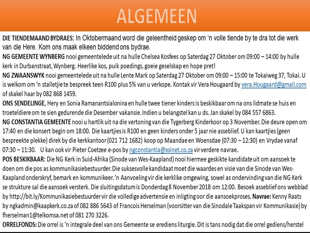 NGVishoek Nuusbrief 22 Oktober 2018