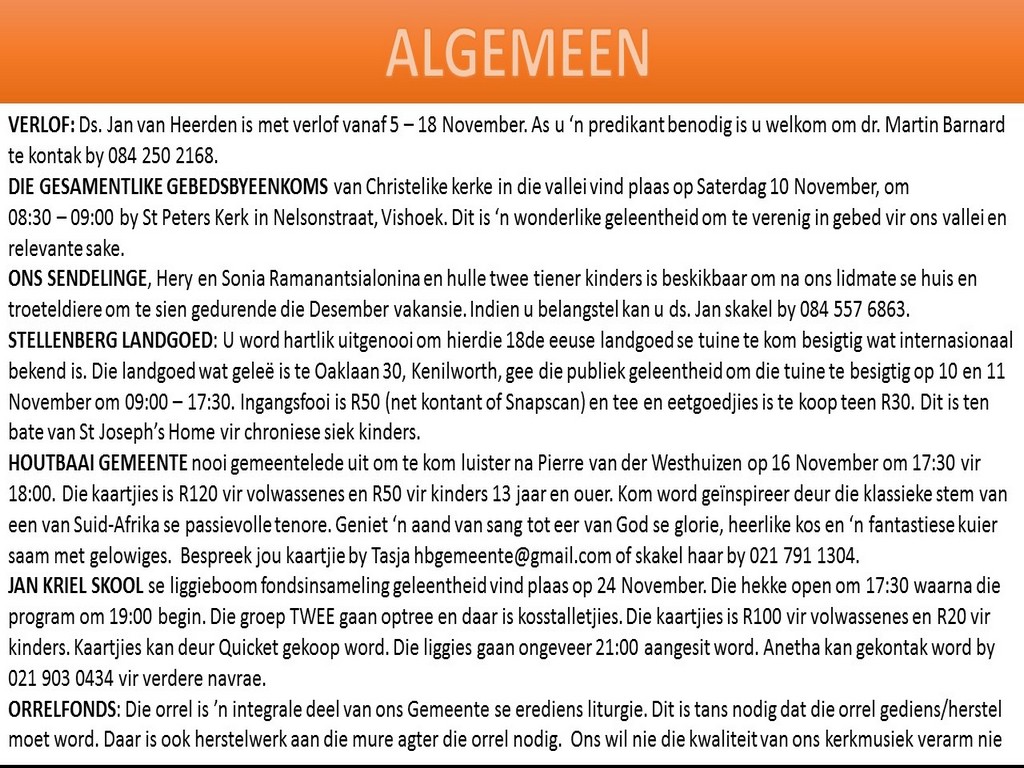 NGVishoek Nuusbrief 5 November 2018
