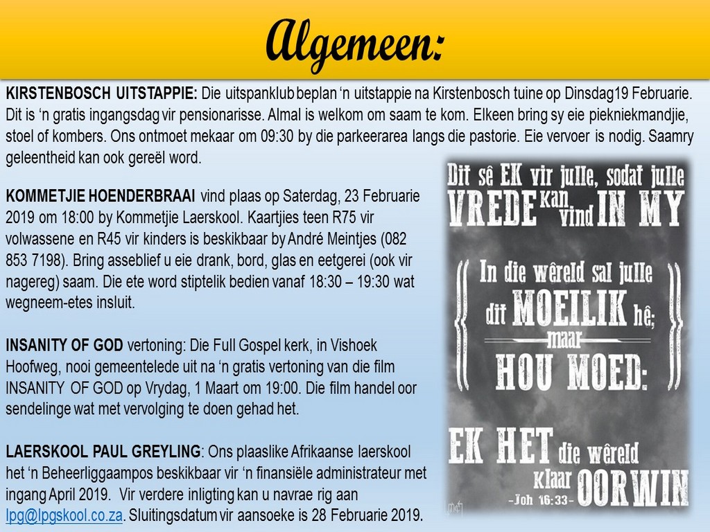 NGVishoek Nuusbrief 18 Februarie 2019